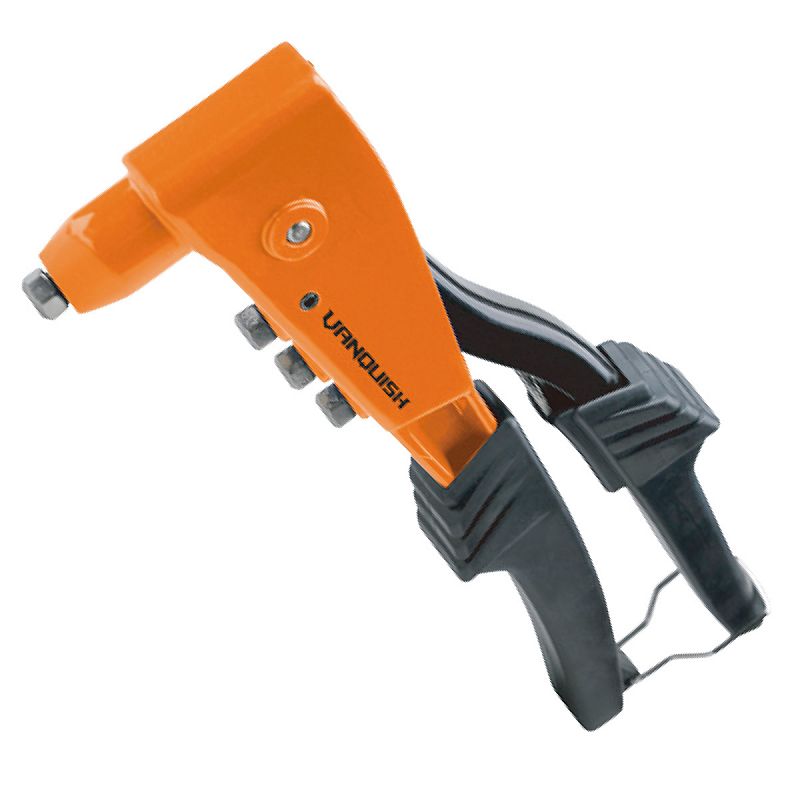• 4 changeable nozzles for 3.2mm(1/8"),2.4mm(3/32"),4.0mm(5/32",4.8mm(3/16") steel/aluminum rivets • Long nose design allows to install rivets in hard to reach areas