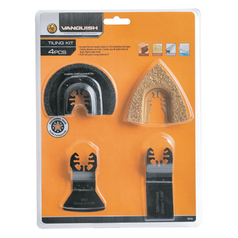 • Includes the most popular blades for tile installation and repair: Carbide abrasive saw blade, Carbide rasp, Bi-metal flush cut blade, Rigid scraper blade